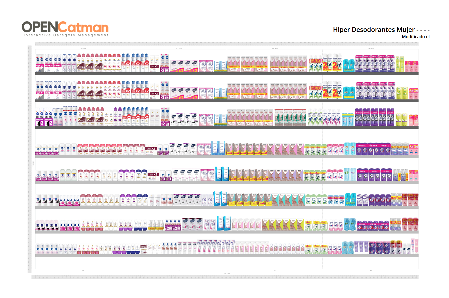 Accede al planograma maestro Unilever Categoría Desodorantes · Mujer · Formato Hipermercado