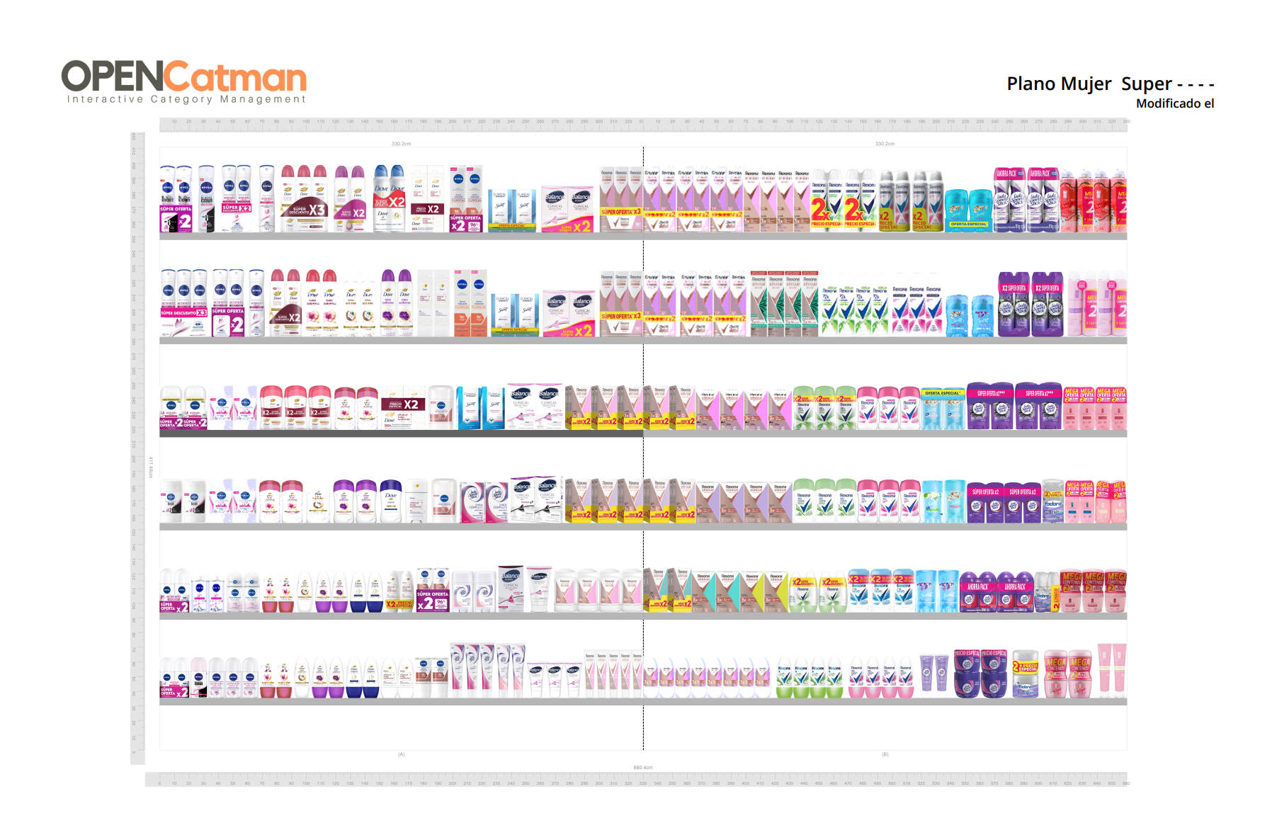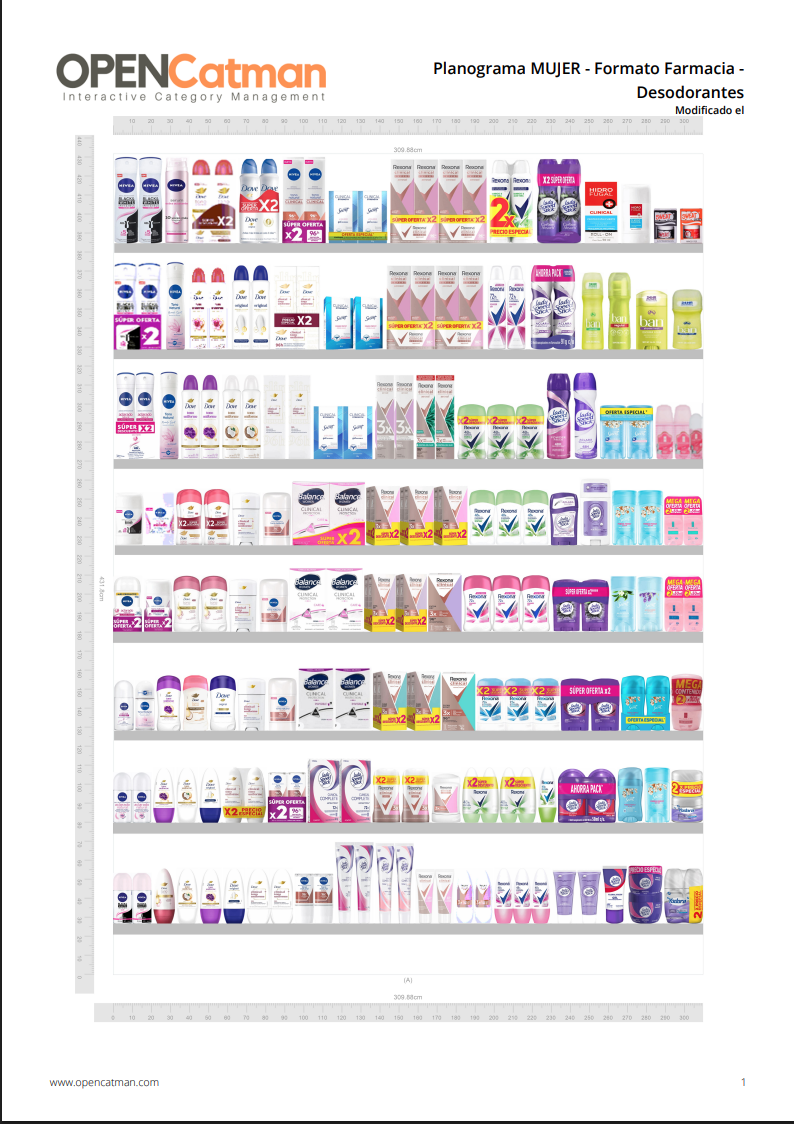 Accede al planograma maestro Unilever Categoría Desodorantes · Mujer · Formato Supermercado