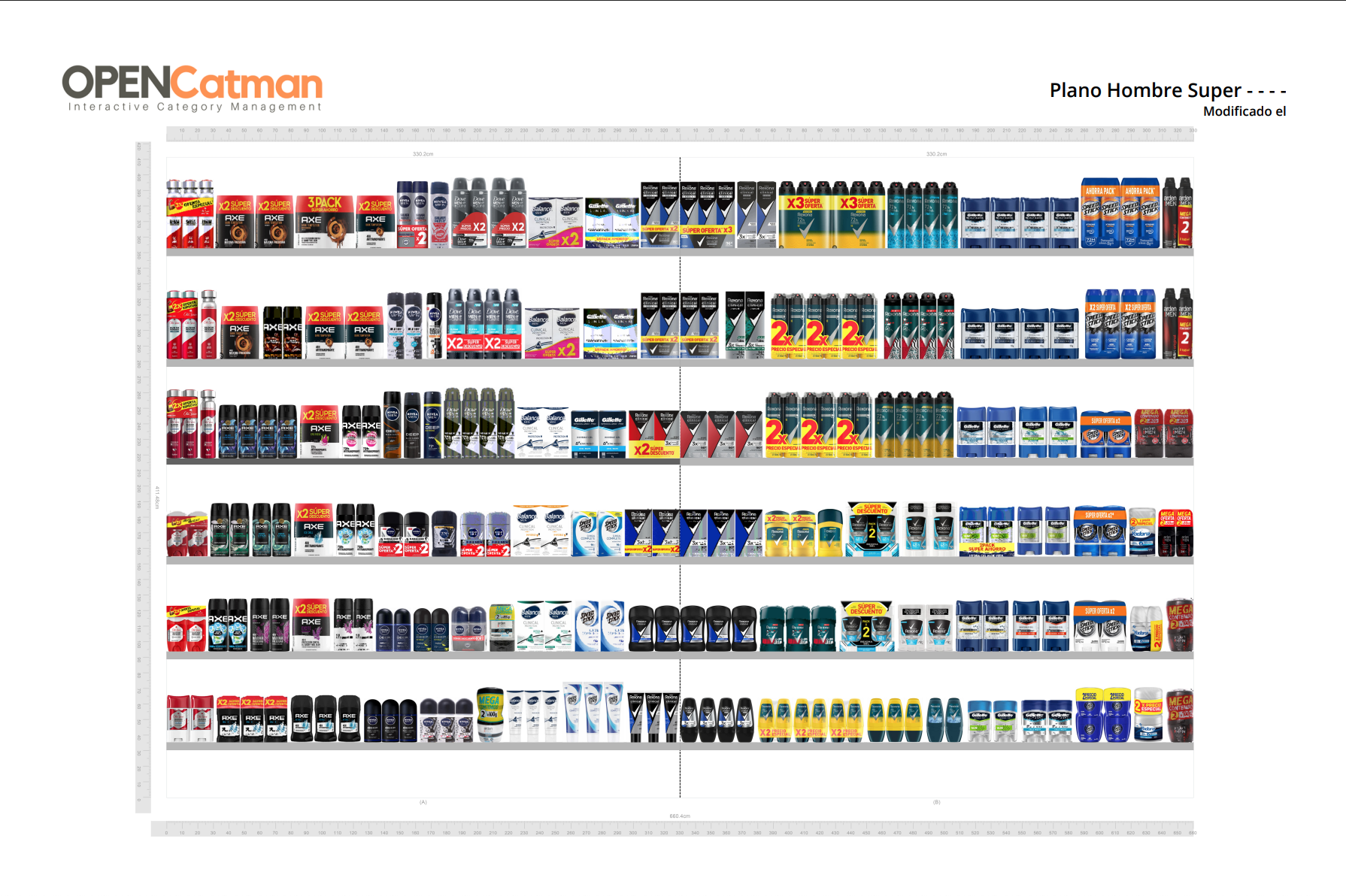 Accede al planograma maestro Unilever Categoría Desodorantes · Hombre · Formato Hipermercado
